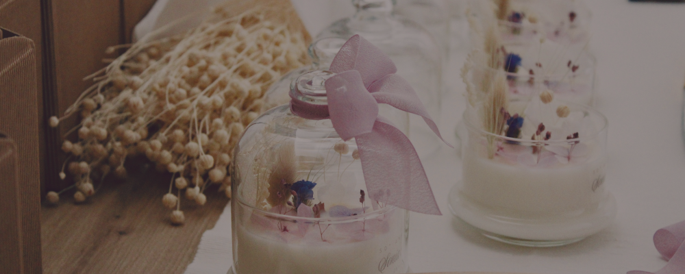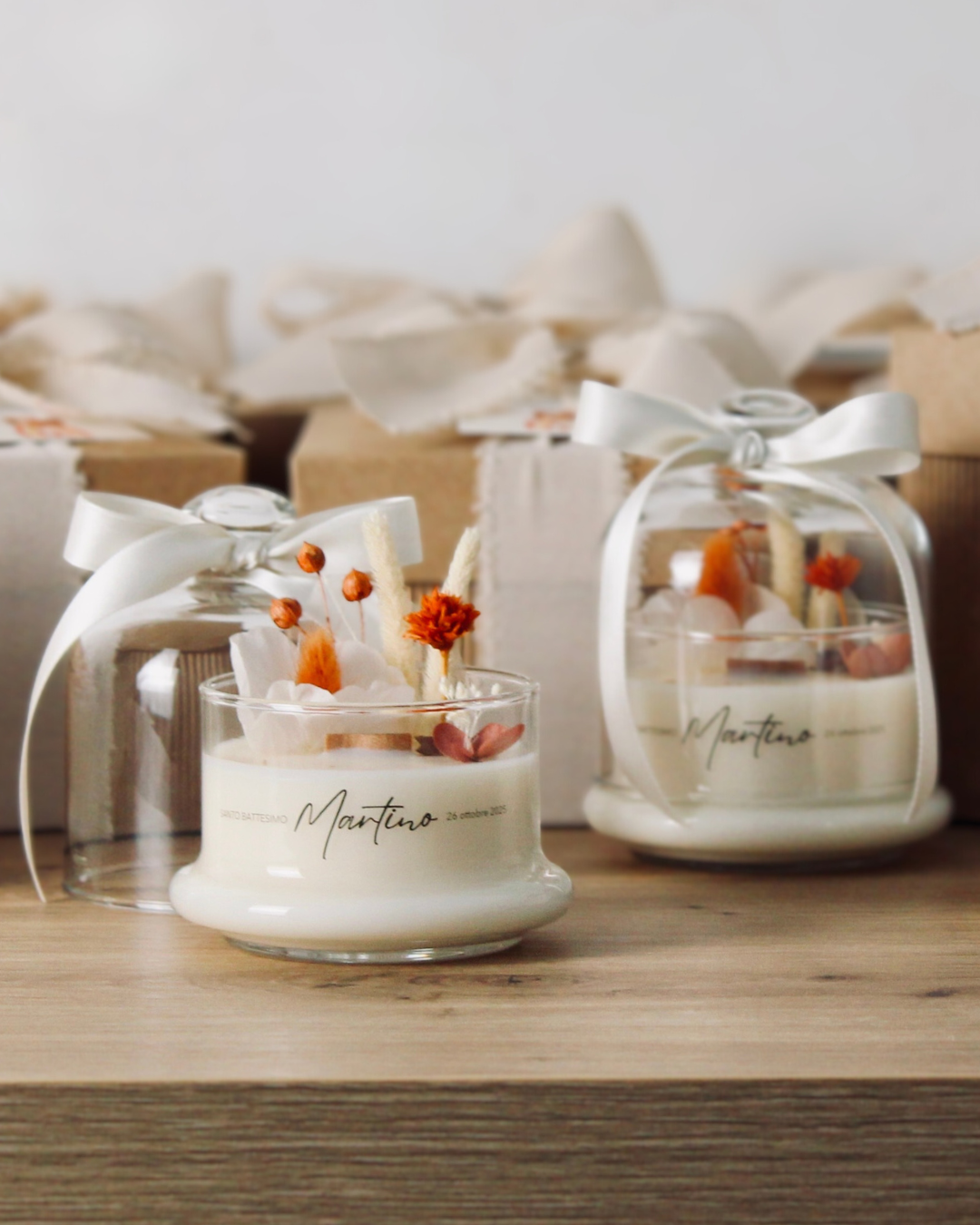 Candele decorate con fiori veri, pensate per chi ama la delicatezza della natura.